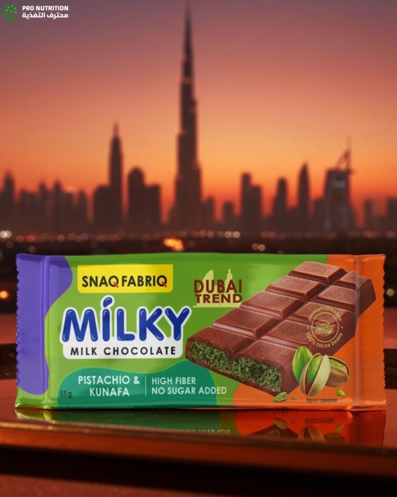 دلل نفسك بمتعة فاخرة مع سناك فابريك، شوكولاتة حليب بالفستق والكنافة، مزيج فريد يجمع بين غنى شوكولاتة الحليب الفاخرة وقرمشة الكنافة التقليدية المزينة بالفستق. هذا البار المبتكر جزء من مجموعة "دبي تريند"، مستوحى من نكهات الشرق الأوسط، ومُصمم خصيصًا لإشباع رغباتك دون المساس بصحتك.