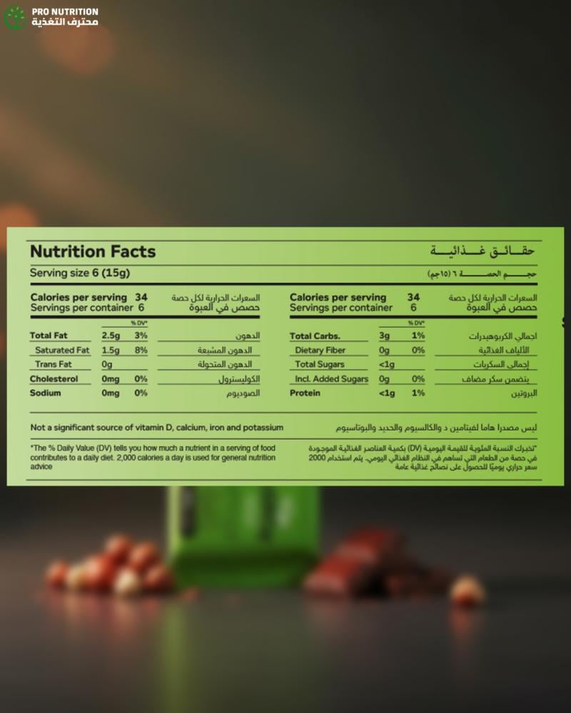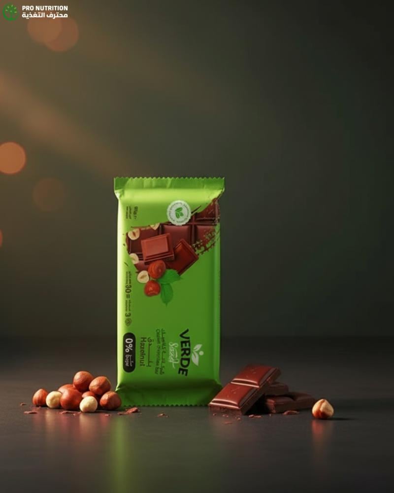 فيردي شوكولاتة بالبندق الكاملة. طعم لا يقاوم مع قطع البندق المقرمشة، وبدون سكر. أفضل شوكولاتة صحية لكل محبي المكسرات. اطلبها الآن